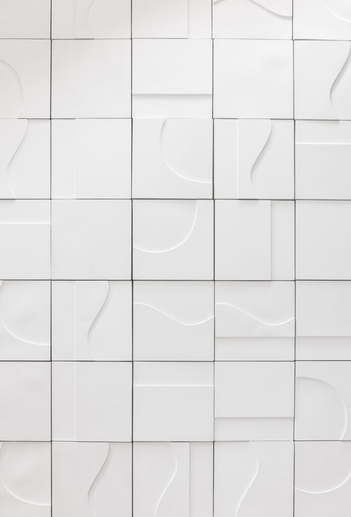 São cinco peças modulares, produzidas artesanalmente pela Penz Revestimentos, que se combinam em diferentes composições e cores, criando superfícies fluidas, vibrantes e únicas.