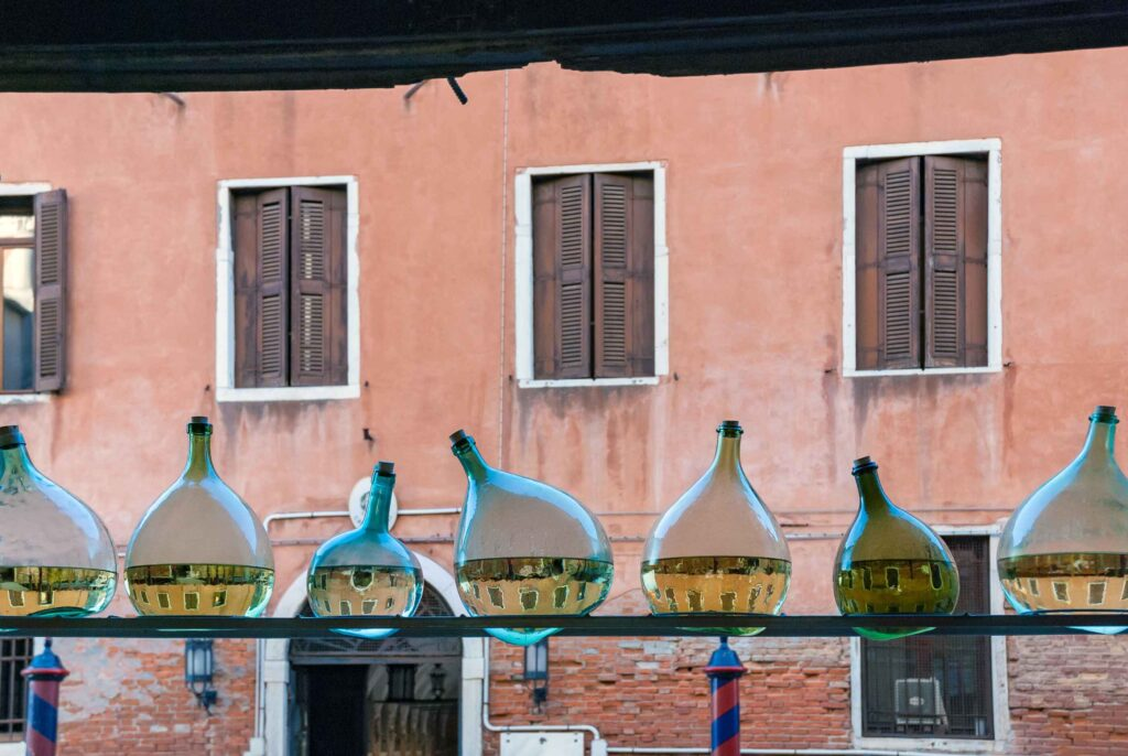 – Vidros Murano soprados à mão, cada um com cor e forma única.